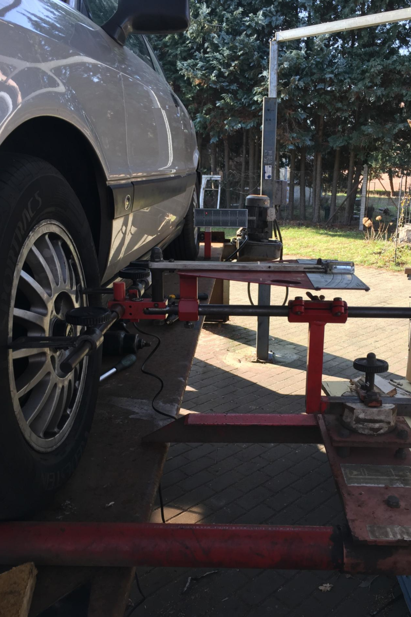 Dieses Wochenende wollte ich dann Sturz und Spur am Audi einstellen. Da ich eine mechanische Vermessungsanlage zur Verfügung habe, wollte ich es mal versuchen. Wenns nicht klappt, kann man ja immernoch woanders hinfahren.