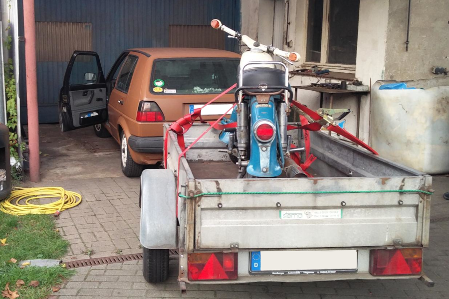 Lange nichts geschrieben, aber es sind doch ein Paar Dinge passiert. Der Golf trägt ein neues Farbkleid, der SR2 aus dem Regal steht nun auf Rädern und, darum soll es hier gehen, eine MZ ES fand den Weg zu mir nach Hause.