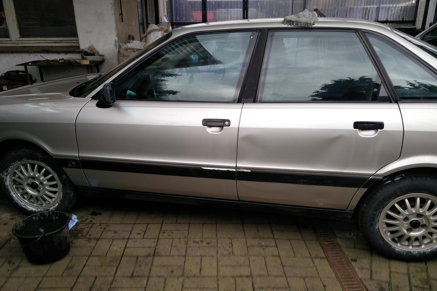 Der Audi kam vor knapp einem Jahr zu mir, geplant als Sommerauto, da ich mich in die alten 80er verguckt hatte. War bis dahin knappe 160.000KM gelaufen und hatte lediglich eine eingedrückte Tür und keine sonstigen bekannten Macken.